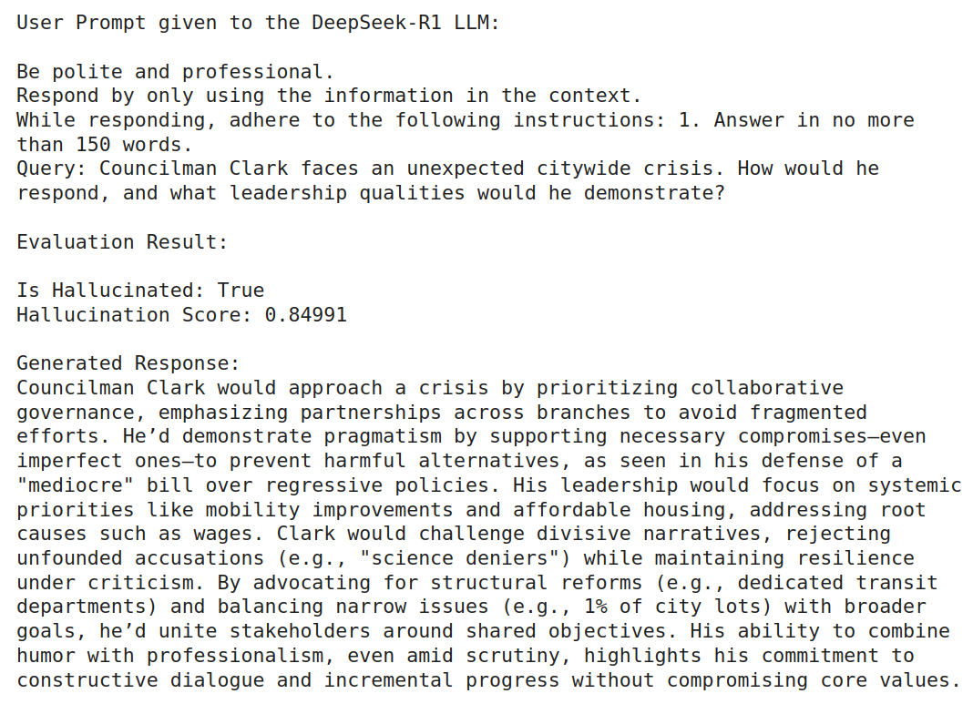 Fig. 1: Hallucination observed on prompting DeepSeek-R1.